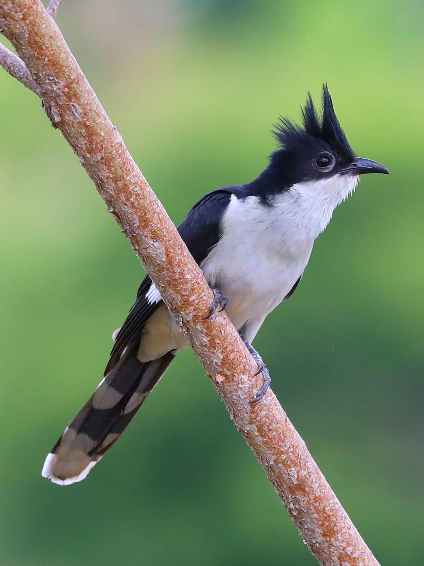 The Jacobin cuckoo (Clamator jacobinus) (Kannada Name: ಚಾತಕಪಕ್ಷಿ - Chaatakapakshi), pied cuckoo or the pied crested cuckoo, is a member of the cuckoo order of birds that is found in Africa and Asia. It is partially migratory and in India, it has been considered a harbinger of the monsoon rains due to the timing of its arrival.[2] It has been associated with a bird in Indian mythology and poetry, known as the chataka (Sanskrit: चातक) represented as a bird with a beak on its head that waits for rains to quench its thirst. Wiki